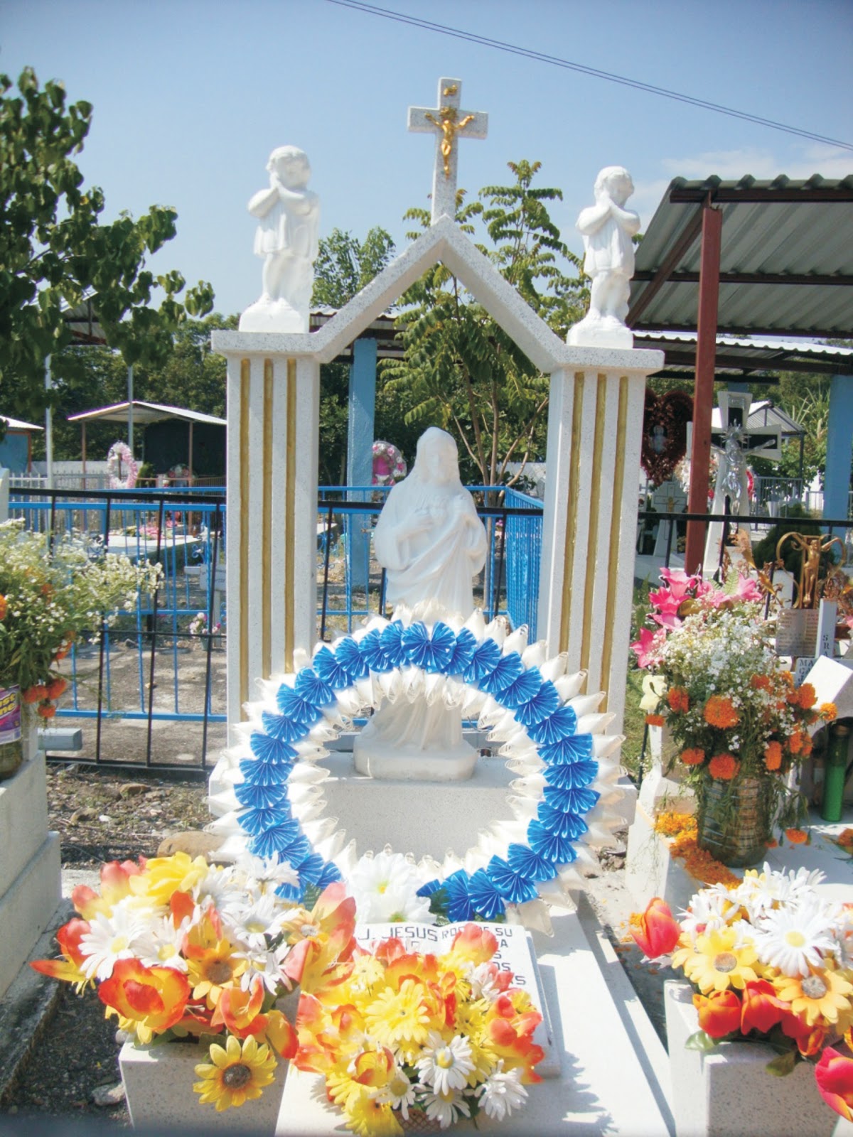 Bi emakume hilerrian beren hildakoei beren apainduriak jartzen. Bata mexikarra, hilarriaren gainean, haien artean usadioa den bezala ogia eta jatekoak uzten, bere hildakoari. Bestea, hemengoa, bere hildakoak lorez ondo apaindu dituen emakumea. Hilarria apaindu ondoren, errukiz begiratzen dio jatekoa utzi duen mexikarrari.