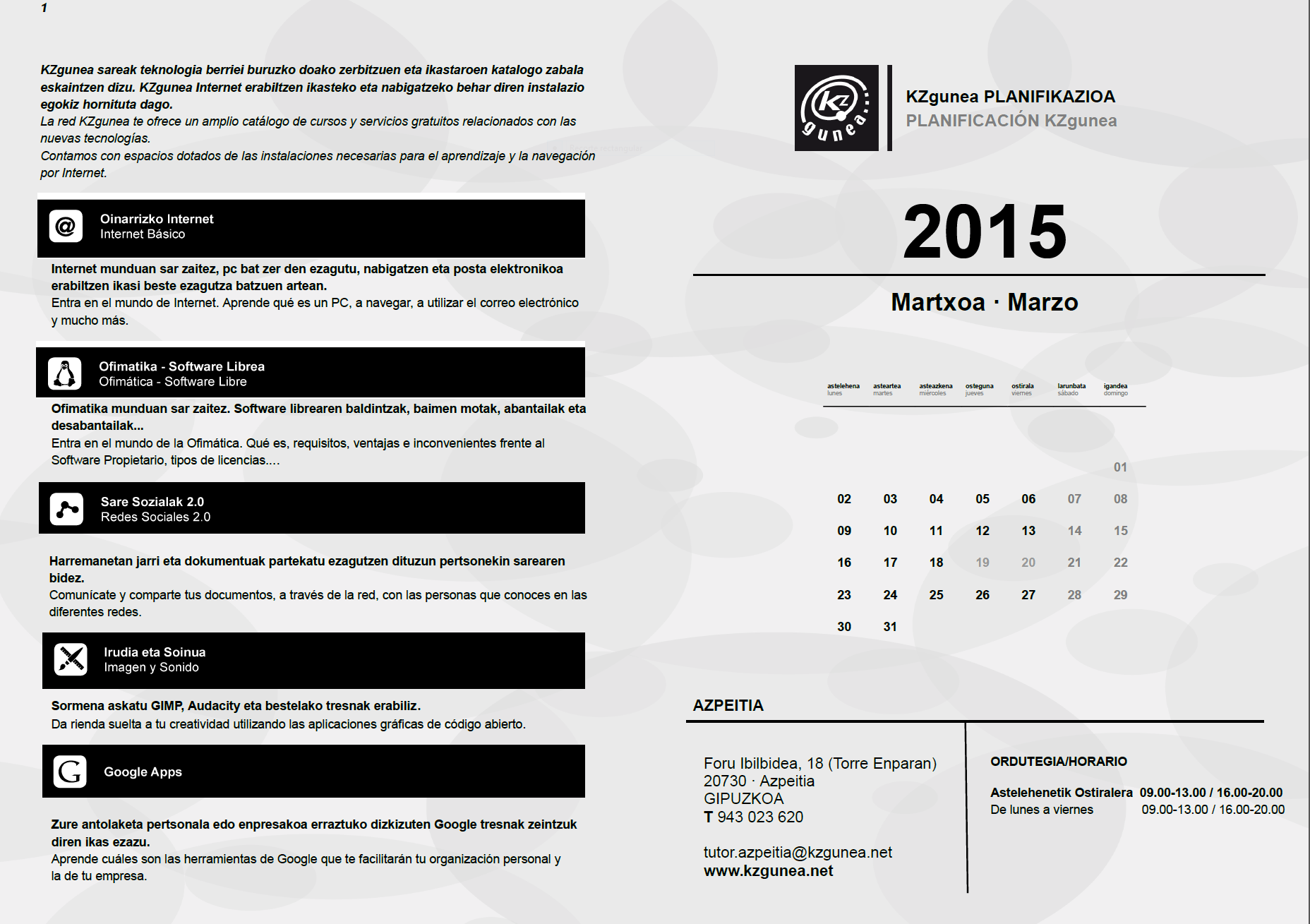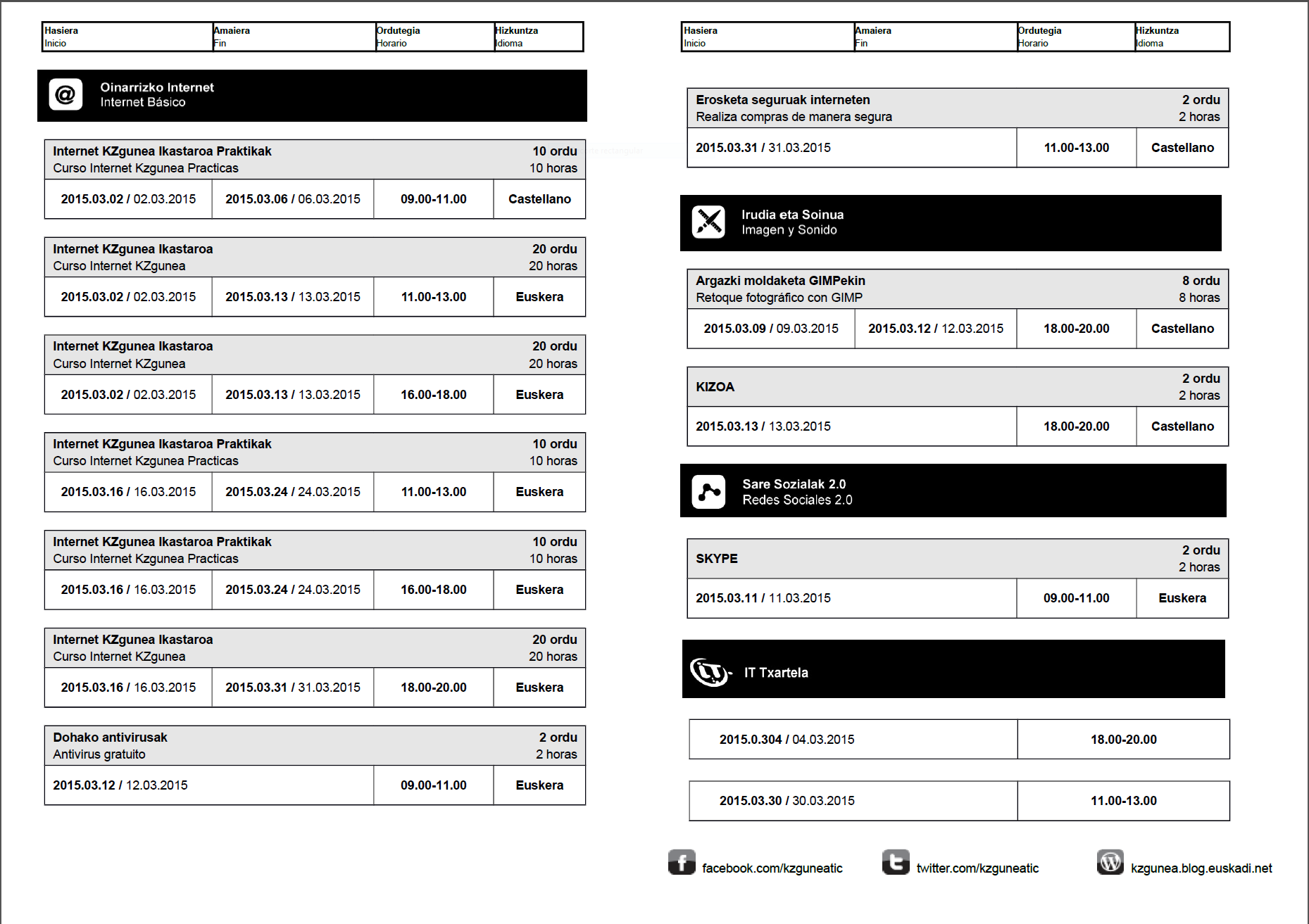 Martxoko informatika ikastaroak On otsaila 18, 2015 By webaigeraIn Kategoriarik gabe,Kultura Azpeitiko KZgunean ondorengo informatika ikastaroak emango dira. Animatu, gozatuz informatika ikasteko!! Ondoren dituzue KZgunean emago diren ikastaroak. Haunditzeko egin klik irudiaren gainean. Partekatu hau: Share on X (Opens in new window) X Share on Facebook (Opens in new window) Facebook Atsegin dut Kargatzen... Related