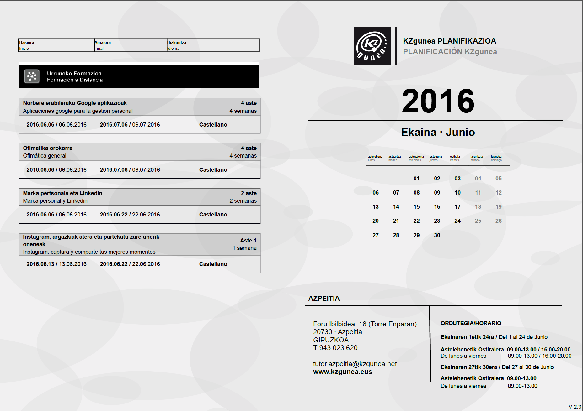 KZguneko ekaineko ikastaroak On apirila 27, 2016apirila 27, 2016 By webaigeraIn Kategoriarik gabe Ondoren ikusiko dituzue KZgunean ekainean emango diren ikastaroak. Anima zaitezte!! Haunditzeko egin lauki gainean klik Partekatu hau: Share on X (Opens in new window) X Share on Facebook (Opens in new window) Facebook Atsegin dut Kargatzen... Related