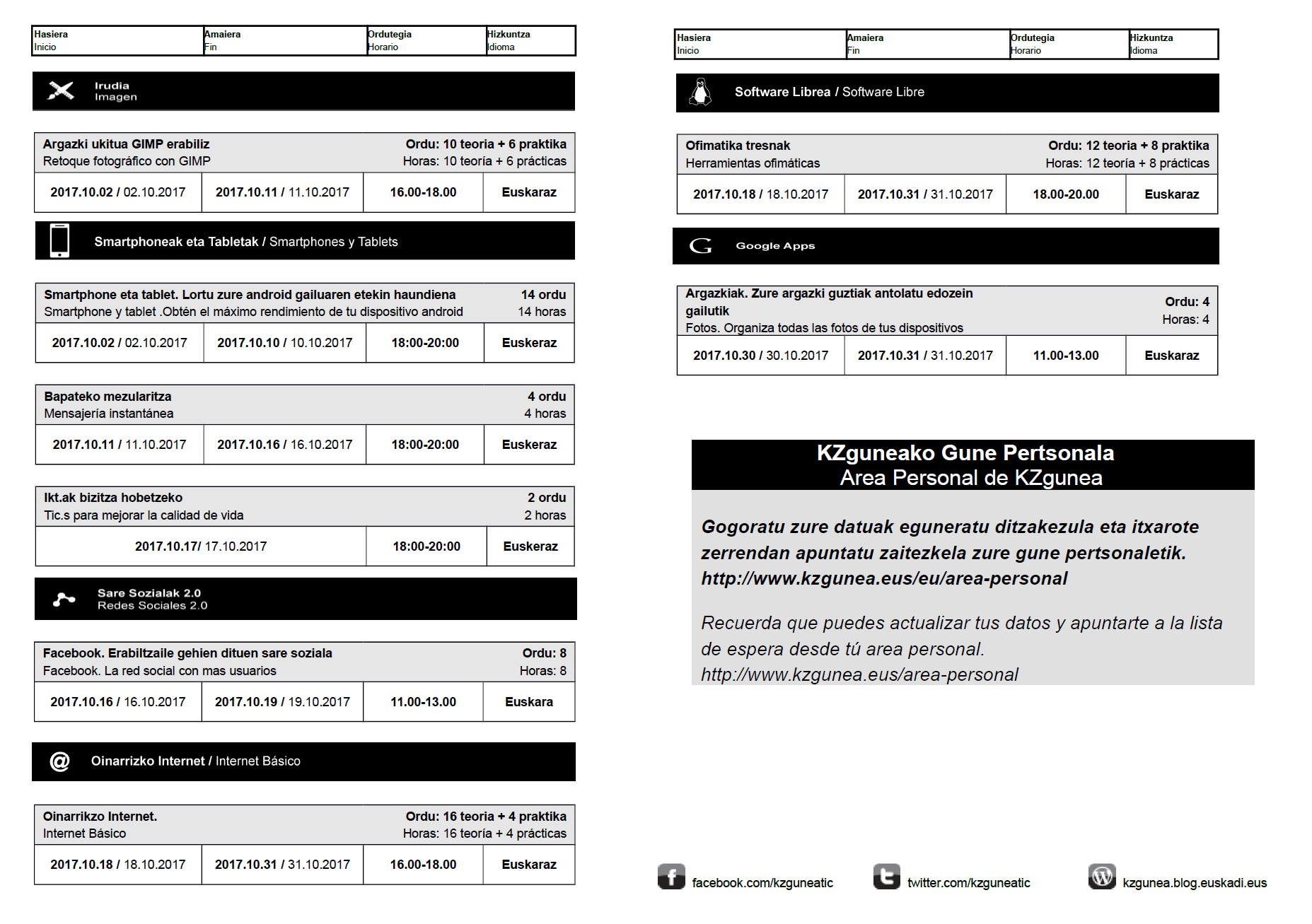 KZguneko urriko ikastaroak On Iraila 21, 2017Iraila 22, 2017 By webaigeraIn Kategoriarik gabe Hemen dituzue KZgunean urrian egin ditzakezuen ikastaroak. Animatu eta apuntatu aukeran dituzuen ikastaroetara. Haunditzeko egin gainean klik. Partekatu hau: Share on X (Opens in new window) X Share on Facebook (Opens in new window) Facebook Atsegin dut Kargatzen... Related