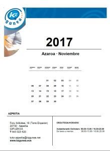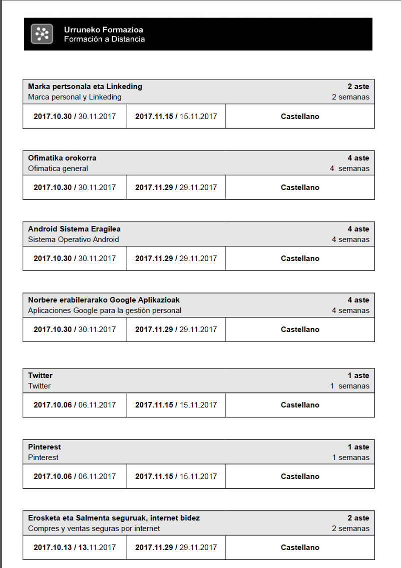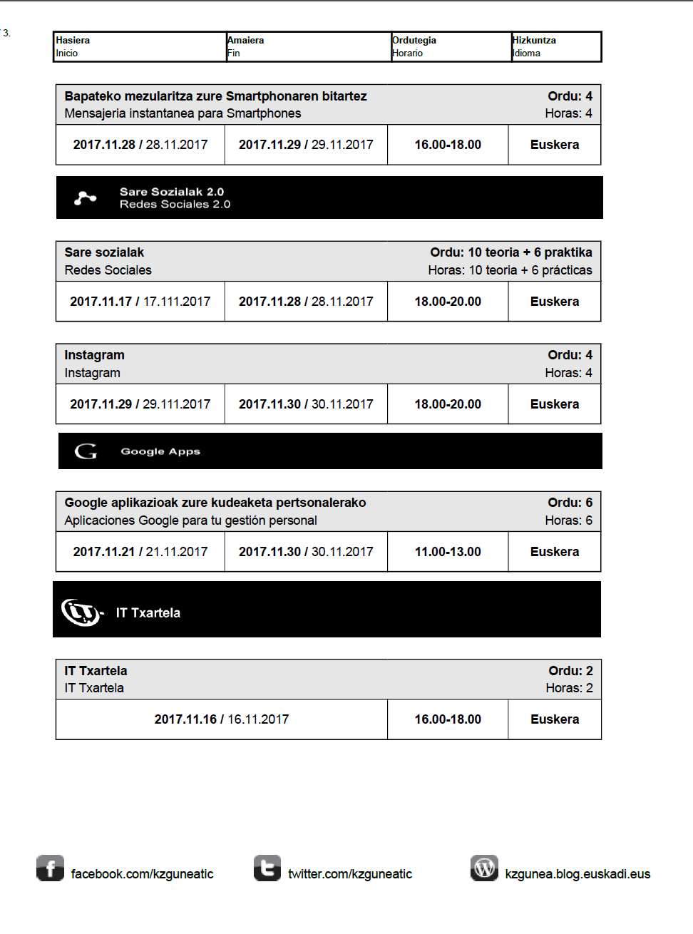 KZguneak azaroan eskaintzen dituen ikastaroak. On urria 17, 2017 By webaigeraIn Kategoriarik gabe Ondorengo kuadroetan dituzue KZguneak azaroan eskaintzen dituen ikastaroak. Egun hotzak datozenez, epelean ikasteko animatu!! Haunditzeko egin gainean klik. Partekatu hau: Share on X (Opens in new window) X Share on Facebook (Opens in new window) Facebook Atsegin dut Kargatzen... Related