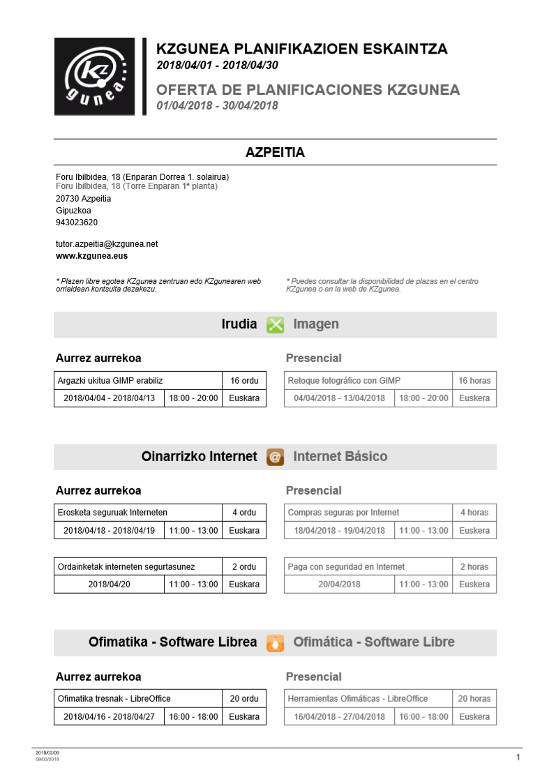 KZguneak apirilerako dituen ikastaroak. On martxoa 10, 2018 By webaigeraIn Kultura KZgunean ondorengo ikastqaroak egiteko aukera duzu apirilean, naziz bertan aurez-aurre edo urrunetik. Animatu zerbait ikasteko denbora pasa. Animo!!! Beti bezala haunditzeko egin gainean klik. Partekatu hau: Share on X (Opens in new window) X Share on Facebook (Opens in new window) Facebook Atsegin dut Kargatzen... Related