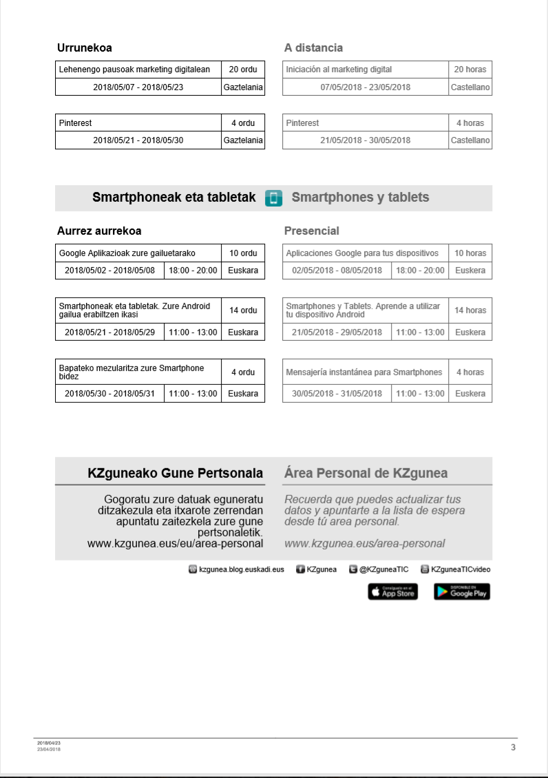 KZgunean maiatzean egin ahal dituzun ikastaroak On apirila 25, 2018apirila 25, 2018 By webaigeraIn Kategoriarik gabe Hemen dituzu KZgunean maiatzen agin ahal dituzun ikastaroak, nahiz urrunekoak edo aurrez aurrekoak. Animatu!! Haunditzeko egin gainean klik. Partekatu hau: Share on X (Opens in new window) X Share on Facebook (Opens in new window) Facebook Atsegin dut Kargatzen... Related