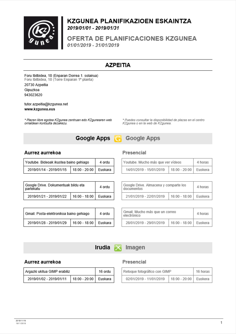 KZguneko urtarrileko ikastaroak On azaroa 21, 2018azaroa 21, 2018 By webaigeraIn Kategoriarik gabe Hemen dituzu KZgunean urtarrilean izango dituzun ikastaroak. Haueek, aurrez-aurrekoak edo urrunekoak izan daitezke. Urteberriarekin batera, haunditu zure jakintza. Haunditzeko egin gainean klil. Partekatu hau: Share on X (Opens in new window) X Share on Facebook (Opens in new window) Facebook Atsegin dut Kargatzen... Related