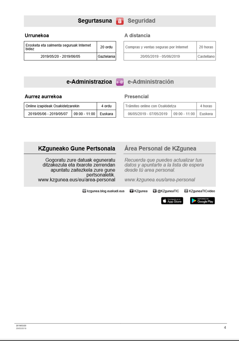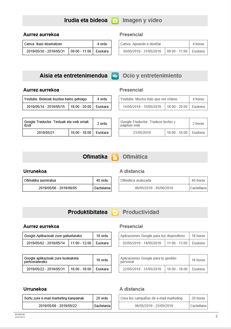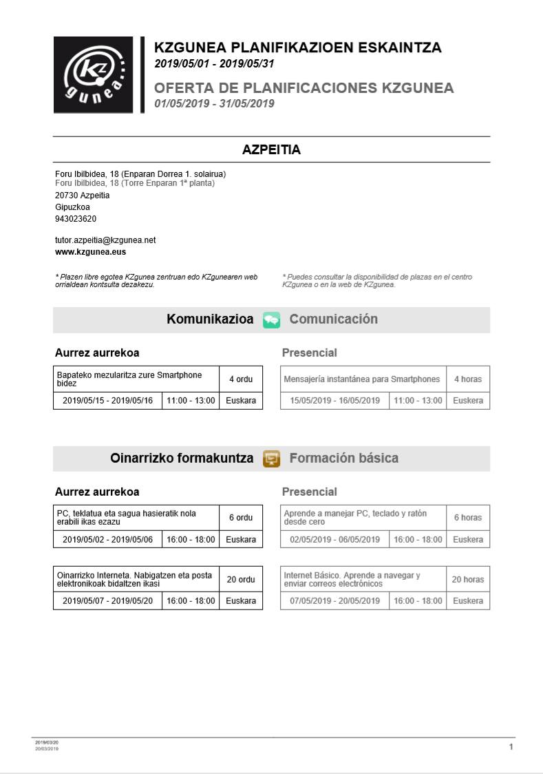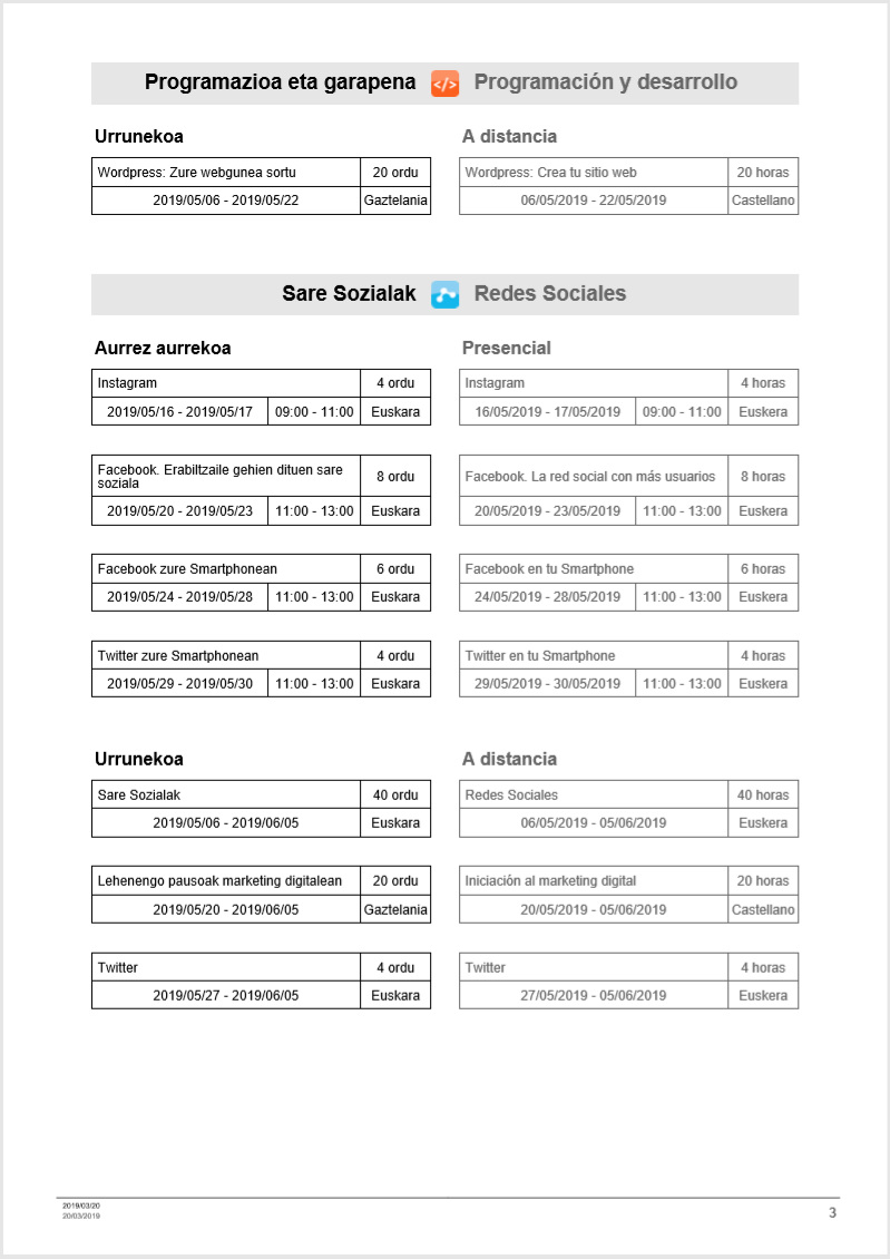 KZguneko maiatzeko ikastaroak On apirila 1, 2019apirila 1, 2019 By webaigeraIn Kategoriarik gabe Ondorengo laukitan dituzu maiatzean KZguneak eskaintzen dizkitzun ikastaroak. Beti bezala, aurrez aurrekoak edo urrunekoak dituzue. Zuen ikasketetan jarraitzeko animatu!! Laukia haunditzeko, egin gainean klik. Partekatu hau: Share on X (Opens in new window) X Share on Facebook (Opens in new window) Facebook Atsegin dut Kargatzen... Related