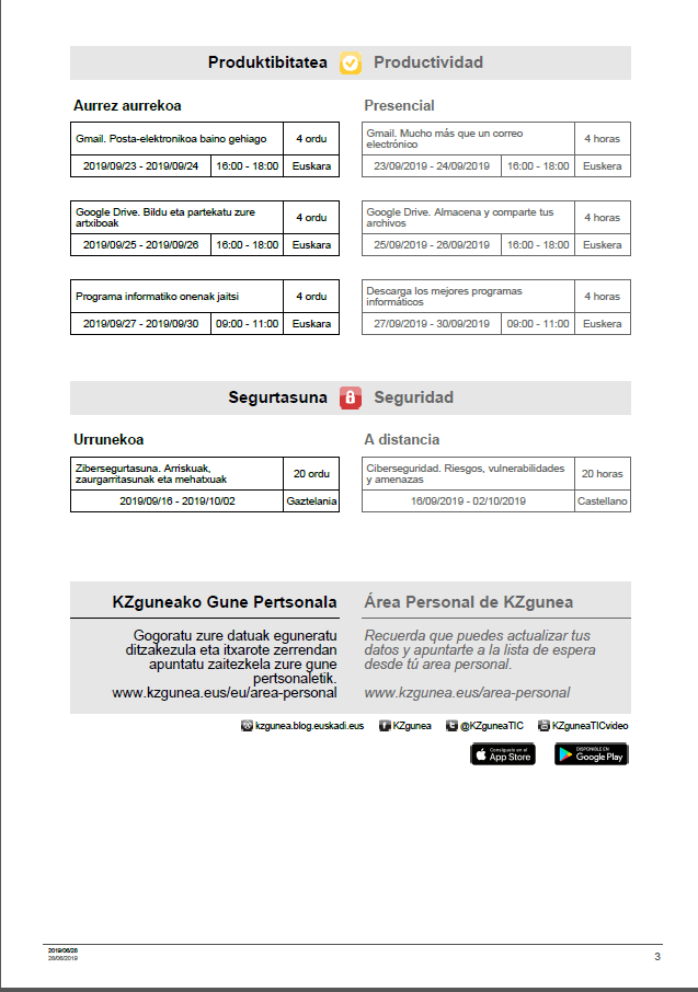 KZguneko iraileko ikastaroak On ekaina 29, 2019 By webaigeraIn Kategoriarik gabe Hemen duzue KZguneak irailean eskaintzen dituen ikastaro zerrenda. Beti bezela. ikastaro haeuk aurrea .aurrekoak edo urrunekoak izan daitezke- Uda pasa ondoren. Animatu zuen jakintza sakontzeko. Haunditzeko egin gainean klik. Partekatu hau: Share on X (Opens in new window) X Share on Facebook (Opens in new window) Facebook Atsegin dut Kargatzen... Related