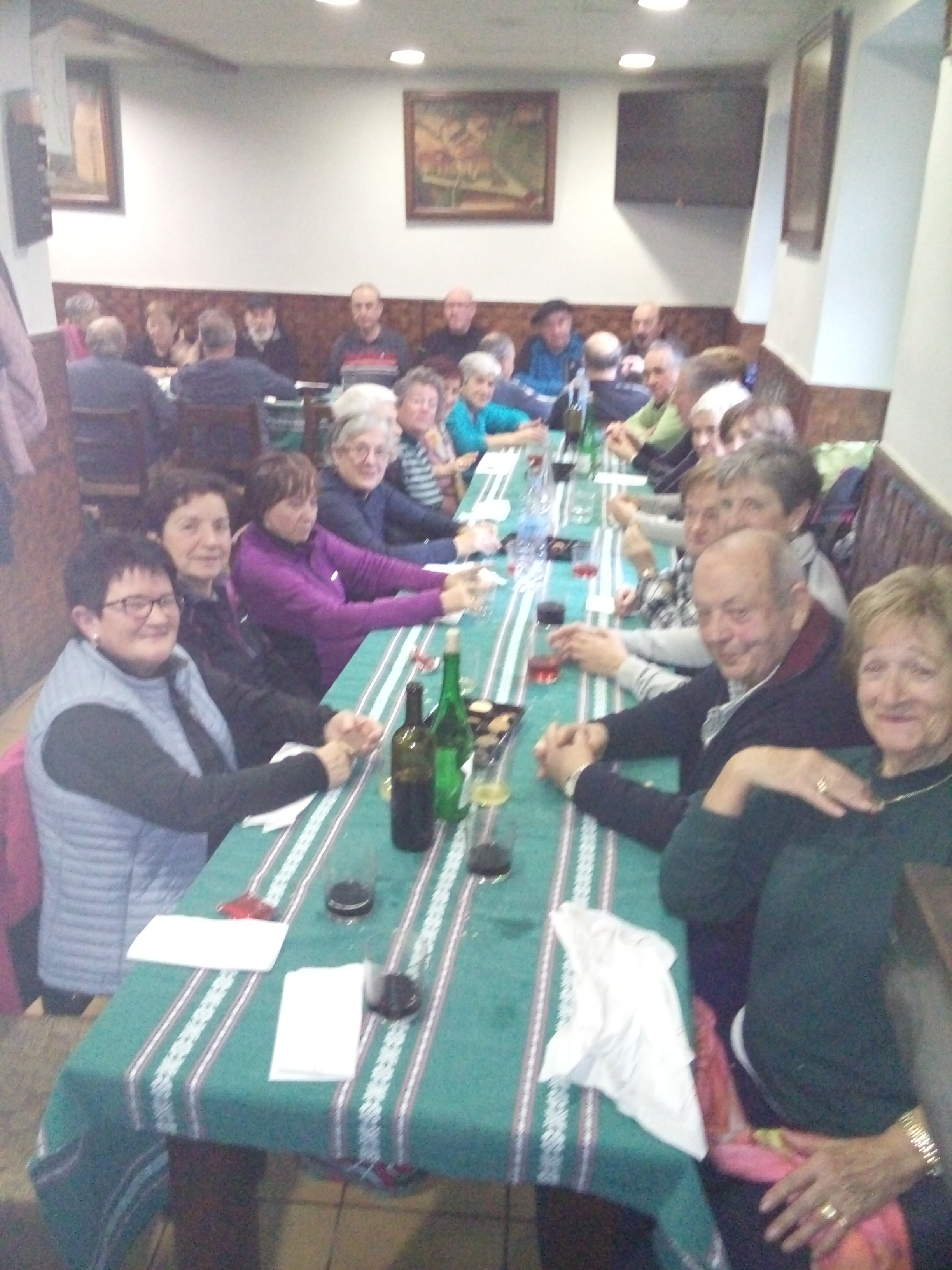Bidea egin ondoren, Nuarbeko elkartean bildu ginen eta bertan, hamaiketako itzela edo ( bazkaria) egin genuen, berriketaldi saio ederra eginez, bukatu zenean dena, etxera buelta, siesta egiteko primeran.