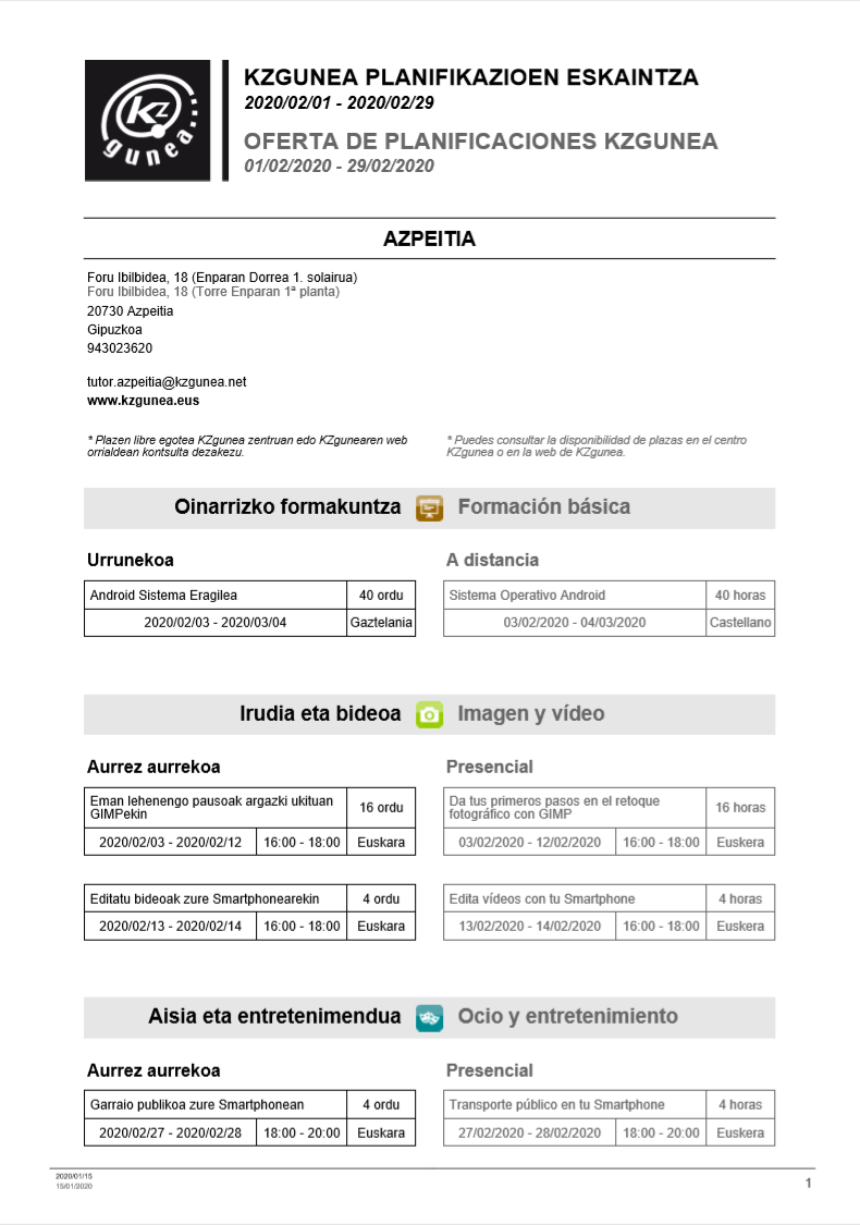 KZguneko otsaileko ikastaroak On urtarrila 18, 2020urtarrila 18, 2020 By webaigeraIn Kategoriarik gabe Hemen dituzue KZguneak otsailerako eskaintzen dituen ikastaroak. Beti bezala, nahiz urrunetik edo aurrez-aurre egin daitezkeenak. Animatu barruko epelean zuen jakintzan aurrera egiteko. Haunditzeko gainean klik egin Partekatu hau: Share on X (Opens in new window) X Share on Facebook (Opens in new window) Facebook Atsegin dut Kargatzen... Related