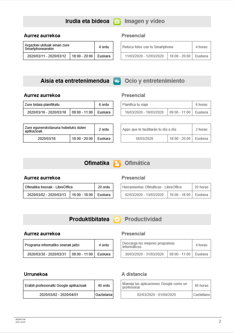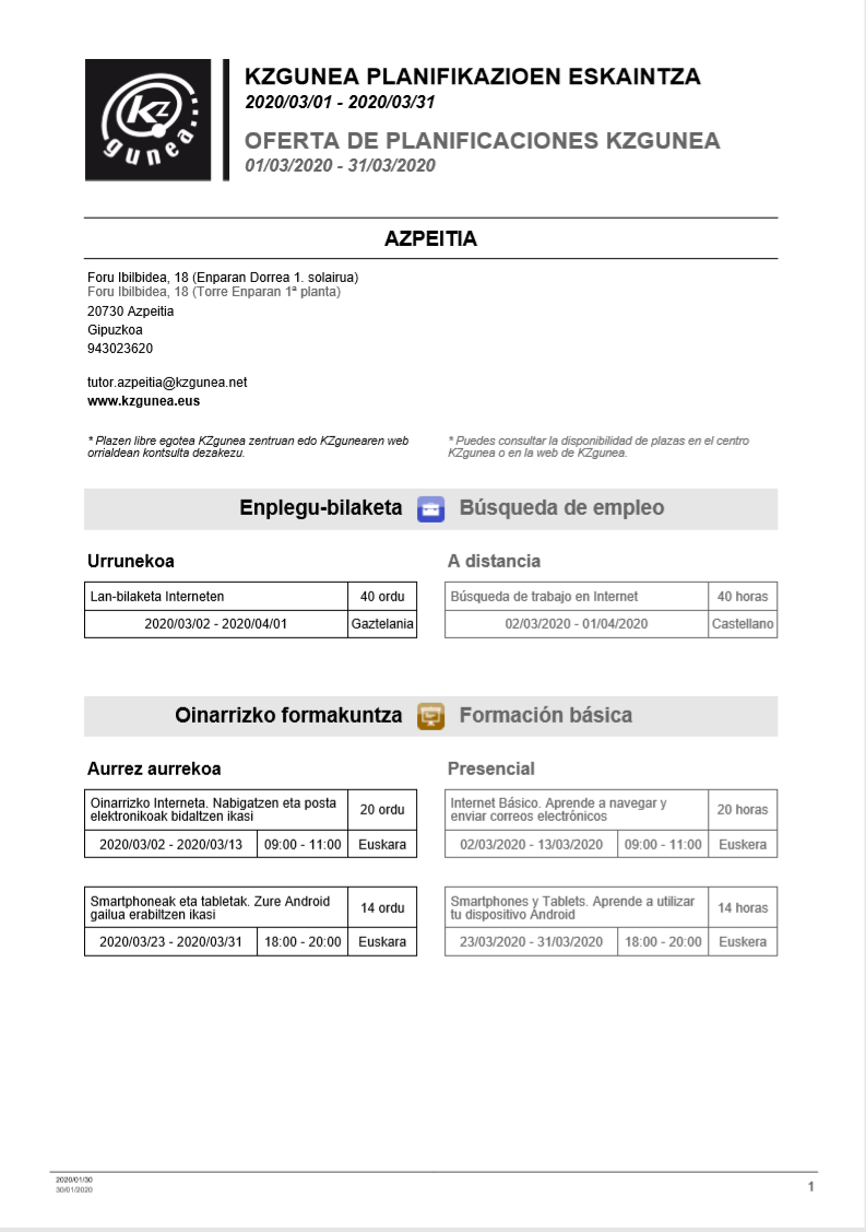 KZguneak martxorako eskaintzen dituen ikastaroak On otsaila 5, 2020otsaila 5, 2020 By webaigeraIn Kategoriarik gabe Heman dituzue KZguneak martxoan eskaintzen dituen ikasraroak. Beti bezala, batzuk aurrez-aurrekoak eta besteak urrunetik egin daitezkeenak. Animatu eta izena eman, zuen jakintza osatzeko. Haunditzeko, egin gainean klik. Partekatu hau: Share on X (Opens in new window) X Share on Facebook (Opens in new window) Facebook Atsegin dut Kargatzen... Related
