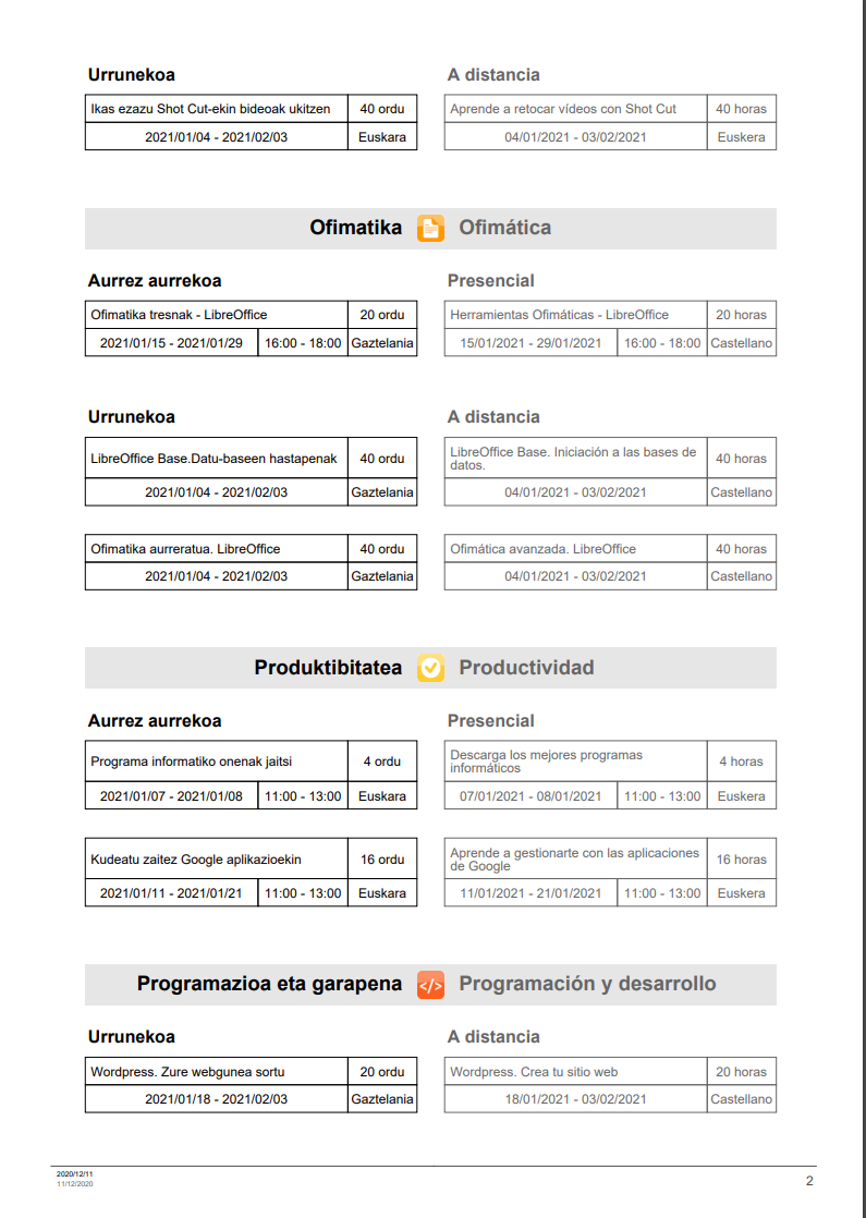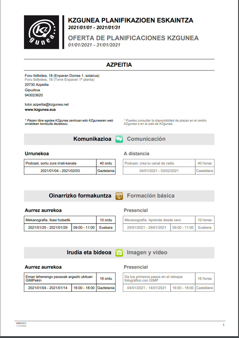 KZguneak urtarrilean eskaintzen dituen ikastaroak On abendua 17, 2020abendua 17, 2020 By webaigeraIn Kategoriarik gabe Hemen dituzue KZguneak urtarrilerako eskaintzen dituen ikastaroak.Beti bezala, batzuk urrunekoak eta besteak aurrez-aurrekoak. Partekatu hau: Share on X (Opens in new window) X Share on Facebook (Opens in new window) Facebook Atsegin dut Kargatzen... Related