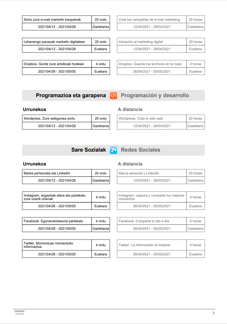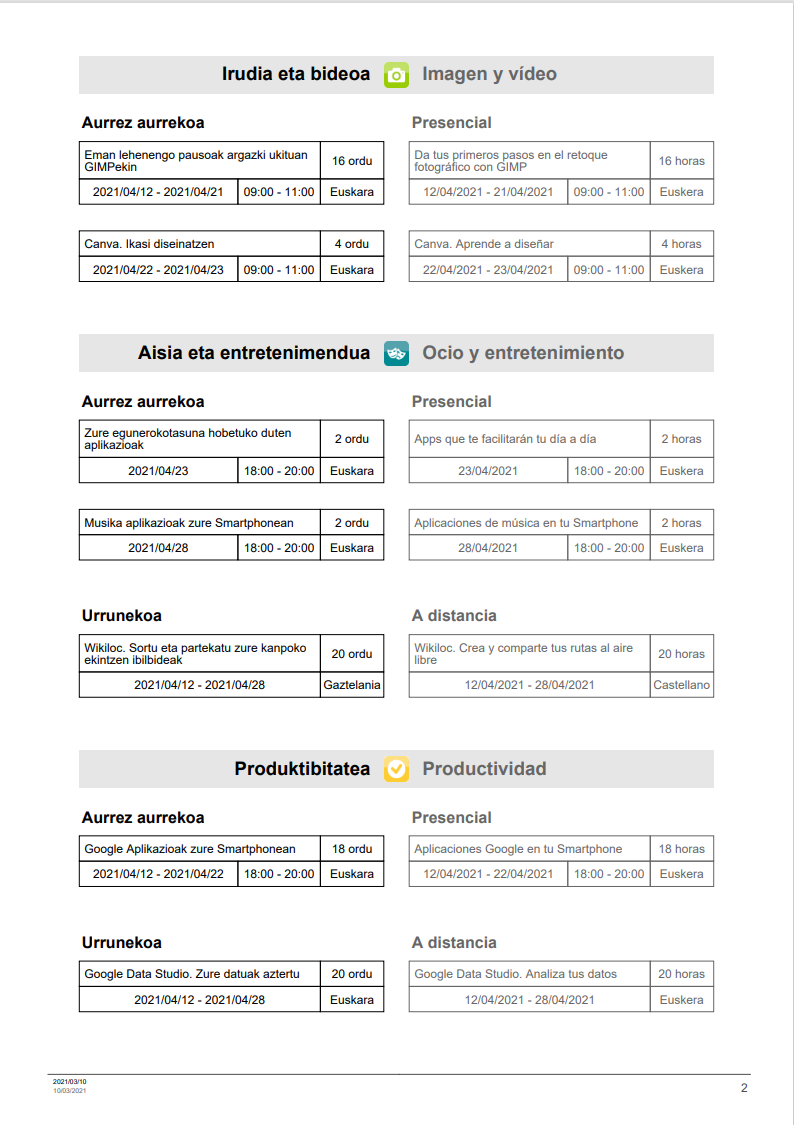 KZguneko maiatzeko ikastaroak On apirila 3, 2021apirila 3, 2021 By webaigeraIn Kategoriarik gabe Hemen dituzu KZguneak maiatzerako eskeintzen dituen ikastaroak. Beti bezela, batzuk urrunekoak eta besteak aurrez-aurrekoak. Animatu zure jakintzan aurrera egiteko. Haunditzeko egin gainean klik. Partekatu hau: Share on X (Opens in new window) X Share on Facebook (Opens in new window) Facebook Atsegin dut Kargatzen... Related