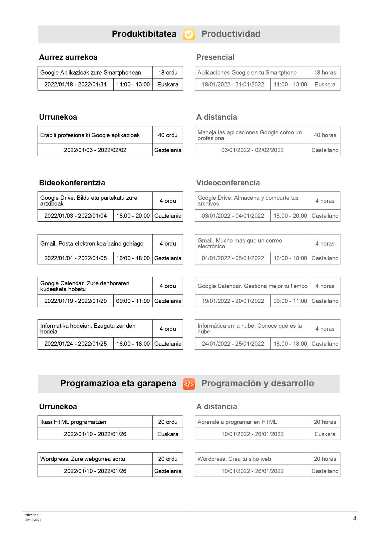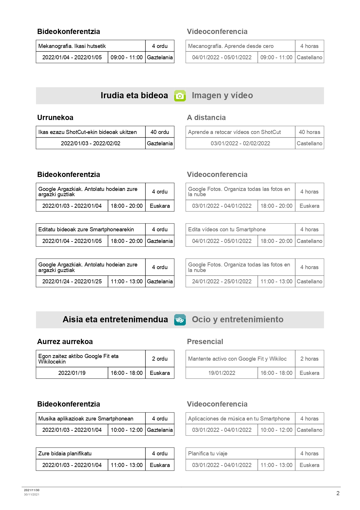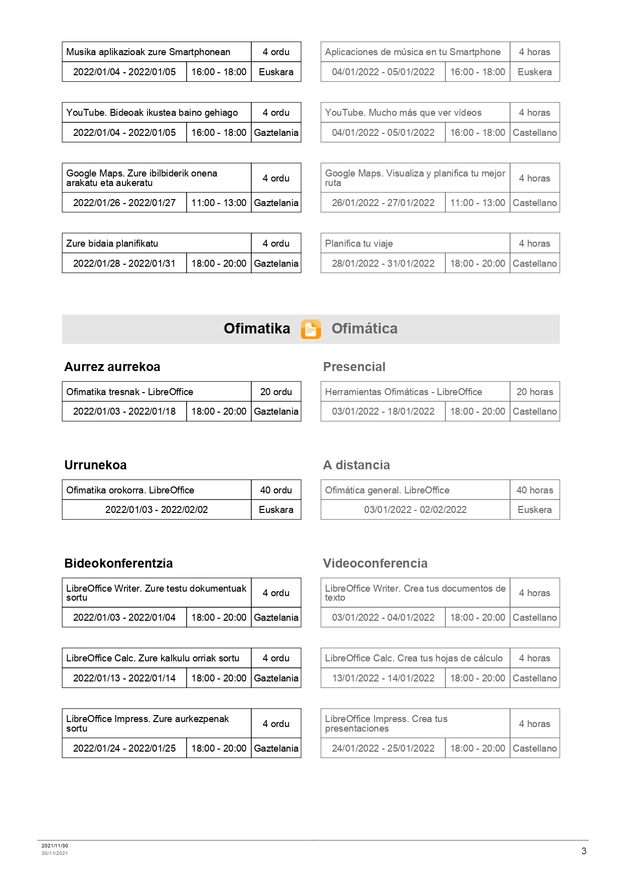 KZguneko urtarrilerako ikastaroak On abendua 7, 2021abendua 7, 2021 By webaigeraIn Kategoriarik gabe Urte berriarekin batera, KZguneko ikastaro berriak. Hemen dituzue urtarrilerako eskeintzen diren ikastaroak. Beti bezela, batzuk urrunekoak eta besteak aurrez-aurrekoak. Haunditzeko egin gainean klik. Partekatu hau: Share on X (Opens in new window) X Share on Facebook (Opens in new window) Facebook Atsegin dut Kargatzen... Related