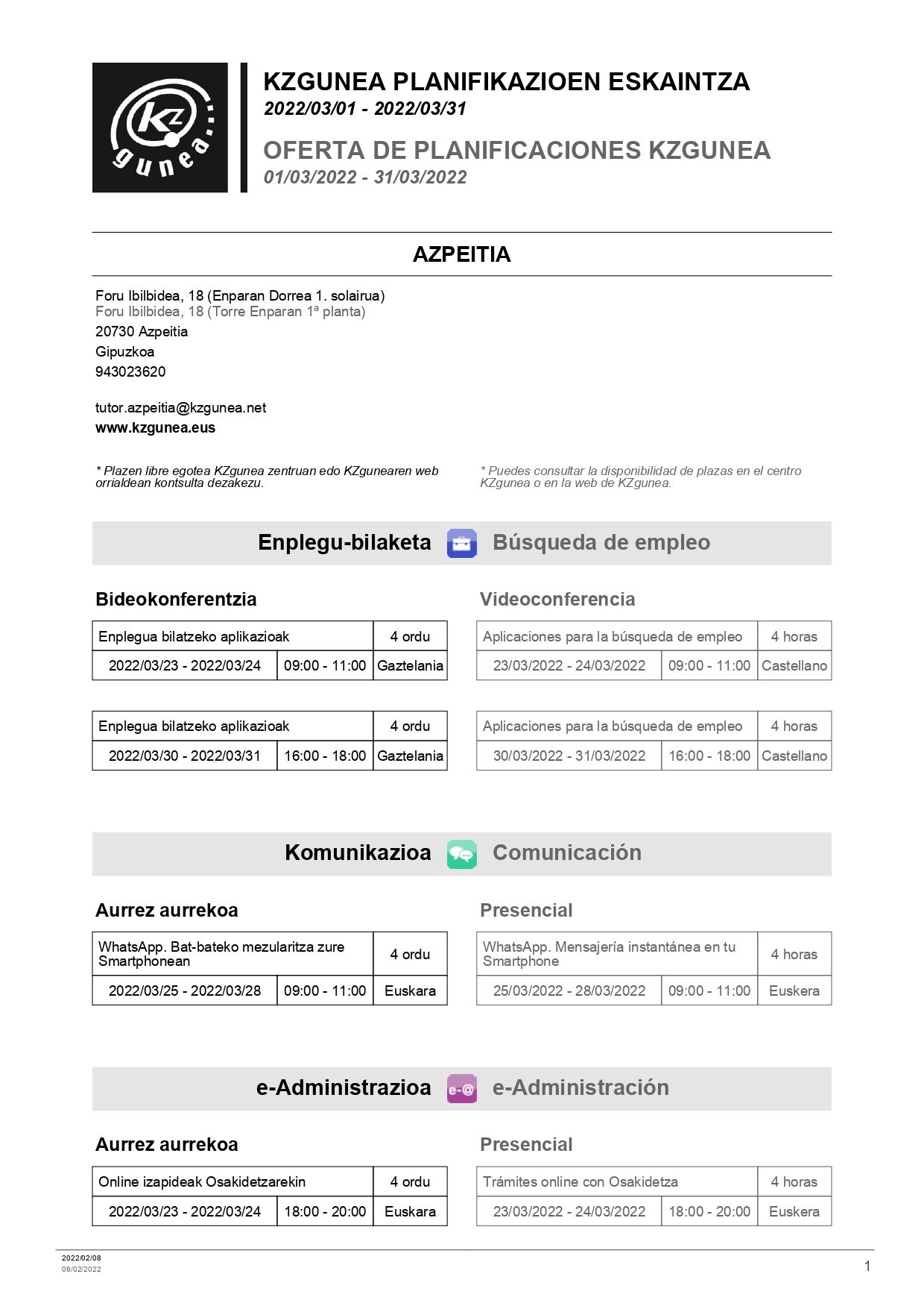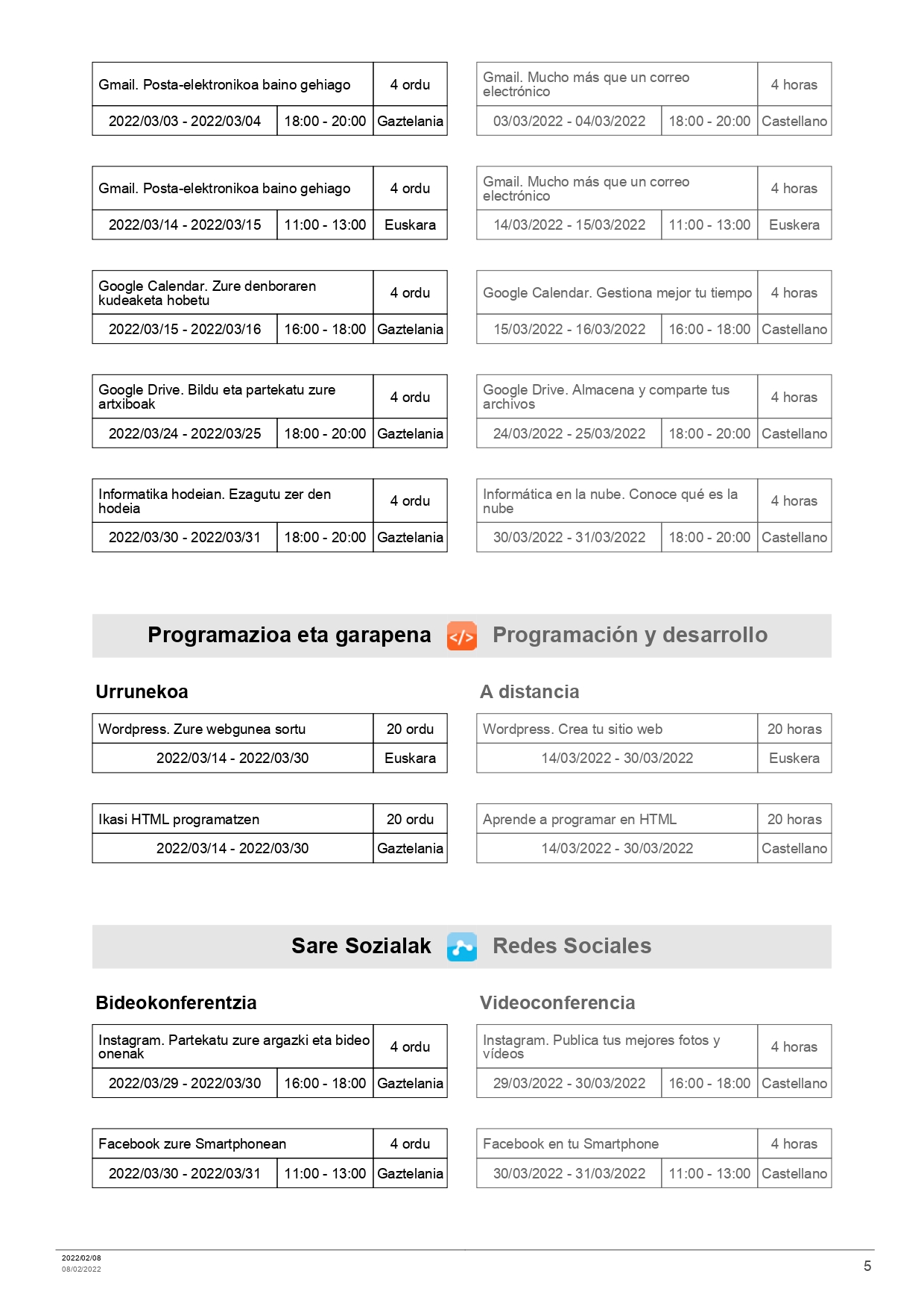 KZguneko martxorako ikastaroak On otsaila 11, 2022 By webaigeraIn Kategoriarik gabe Hemen dauzkazue martxorako KZguneak eskeintzen dituen ikastaroak. Beti bezela, batzuk urrunekoak eta besteak aurrez-aurrekoak. Haunditzeko egin gainean klik. Partekatu hau: Share on X (Opens in new window) X Share on Facebook (Opens in new window) Facebook Atsegin dut Kargatzen... Related