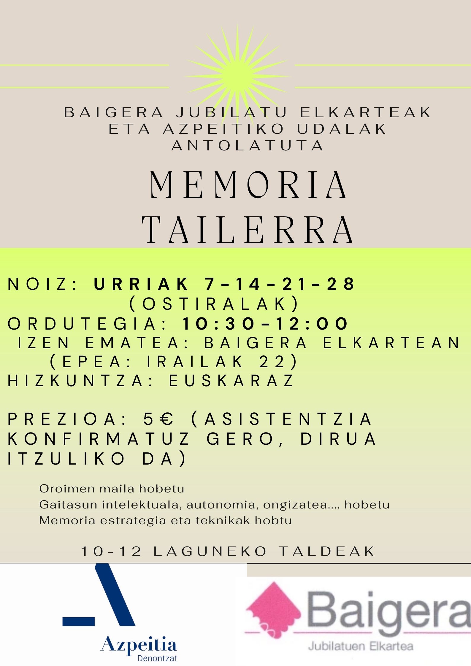 MEMORIA TAILERRA On Iraila 13, 2022Iraila 15, 2022 By webaigeraIn Kategoriarik gabe Hemen parte artzeko izena BAIGERAN heman behar da. 5 euroko seinale hori itzuliko zaio asistentziarekin kunplitzen duen orori. Partekatu hau: Share on X (Opens in new window) X Share on Facebook (Opens in new window) Facebook Atsegin dut Kargatzen... Related