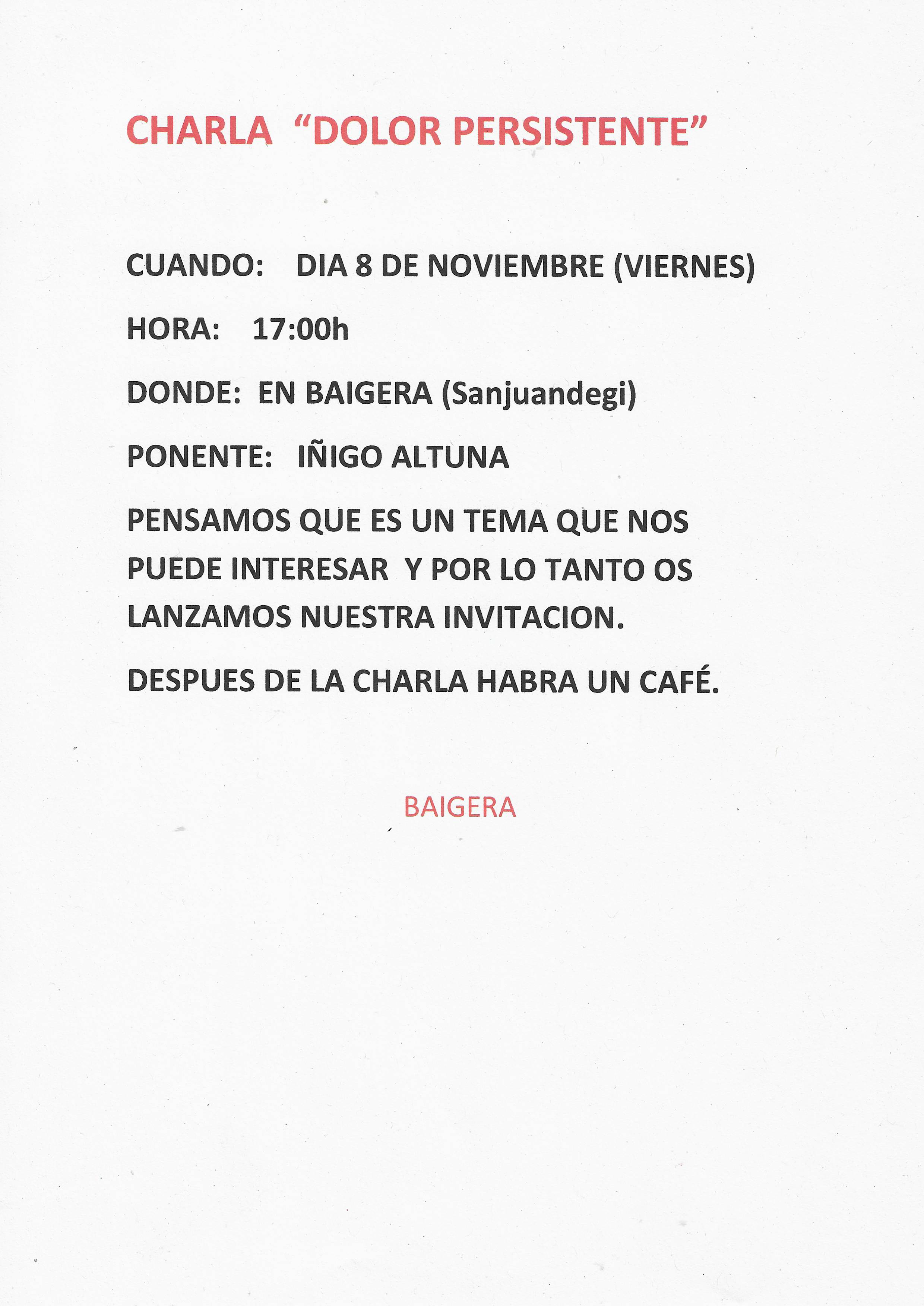 CHARLA “DOLOR PERSISTENTE” On urria 30, 2023 By webaigeraIn Kategoriarik gabe Partekatu hau: Share on X (Opens in new window) X Share on Facebook (Opens in new window) Facebook Atsegin dut Kargatzen... Related